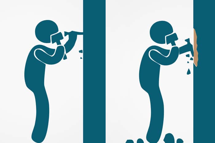 - Ôter un morceau de revêtement mural : si le doute subsiste, il ne reste qu’à dénuder un petit pan de mur, de préférence dans un coin peu visible ou dissimulé par un meuble. Cela permet de vérifier, pierre après pierre, la véritable composition du mur. Attention toutefois : dans les bâtiments anciens, tous les murs ne sont pas identiques. Il vaut donc mieux tester précisement la zone concernée.