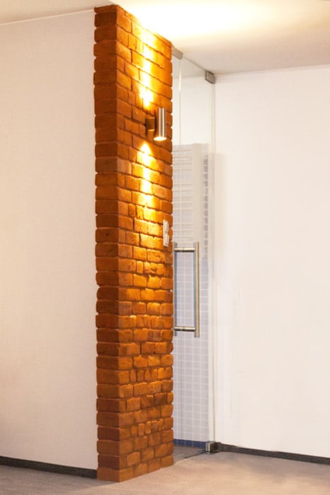 Jouer sur les contrastes et l’originalité : nul besoin de recouvrir tout le mur. Un pan dévoilé, une bande verticale, un mur à mi-hauteur… tout est permis pour accentuer un coin lecture ou donner du relief à un espace repas. On peut aussi aménager une niche avec éclairage indirect qui met en valeur la texture de la brique, ou, à l’inverse, installer les briques sur un rebord exposé à la lumière.