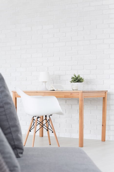 Un mur blanc texturé, c’est un parti pris qui attire l’œil sans alourdir la pièce. La base d’accroche limite l’absorption de la peinture par la brique, et garantit une tenue durable.