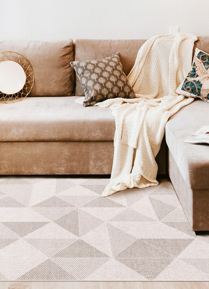 L’avis de la rédac’ : Pour un salon au look Japandi sans les contraintes, nous vous conseillons de voir les tapis vinyle aux motifs « effet matière » naturelle proposés par des spécialistes comme Decortapis.